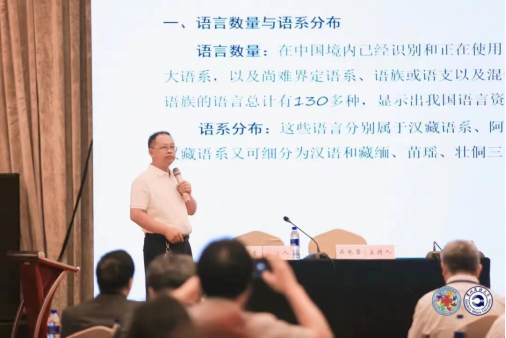 湖南文理学院文史与法学学院语言学教研室主任谭晓平教授作《苗瑶语弛声的类型学研究》的主旨发言